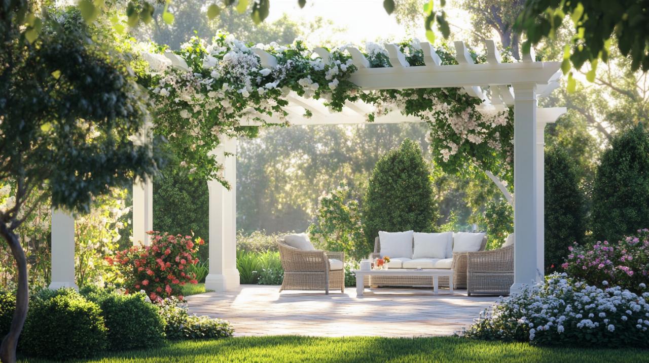 El color blanco de la pérgola ofrece una base neutra y luminosa que combina perfectamente con cualquier tipo de mobiliario de jardín. Ya sea que prefieras mesas extensibles de madera natural, conjuntos de ratán sintético en tonos beige o muebles metálicos en acabados grises, la pérgola blanca actúa como un lienzo que realza y complementa estos elementos sin competir visualmente con ellos. No obstante, si tu preferencia estética tiende hacia otros matices, muchos fabricantes ofrecen la posibilidad de elegir colores según el catálogo RAL, que incluye opciones en beige, gris y otros tonos que se adaptan a diferentes paletas cromáticas. Esta personalización permite crear una continuidad visual entre la pérgola, la fachada de tu vivienda y el resto de elementos del jardín, logrando un resultado armónico y profesional. El estilo escandinavo, con su preferencia por líneas limpias y colores claros, encuentra en la pérgola blanca un aliado perfecto, mientras que los diseños más contemporáneos se benefician de la versatilidad que ofrece esta estructura para incorporar elementos tecnológicos como la motorización o la domótica.